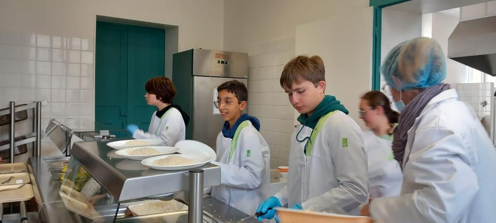 Ils ont réalisé des dessins et des affiches qu’ils ont mis dans l’établissement pour annoncer cette opération. Ils ont aussi fait des fiches d’inscription et ils ont contacté des associations. Le vendredi saint, ils ont servi le bol de riz à la cantine. Les bénéfices financiers du bol de riz seront cette année attribués à deux associations : « Les enfants du désert » et « Chaîne de lumière pour l’Ukraine ». Ils ont choisi ces associations car l’une est promue par l’établissement et l’autre afin d’aider plus particulièrement les enfants. Les élèves de 4e ont vraiment aimé organiser le bol de riz, c’était passionnant.